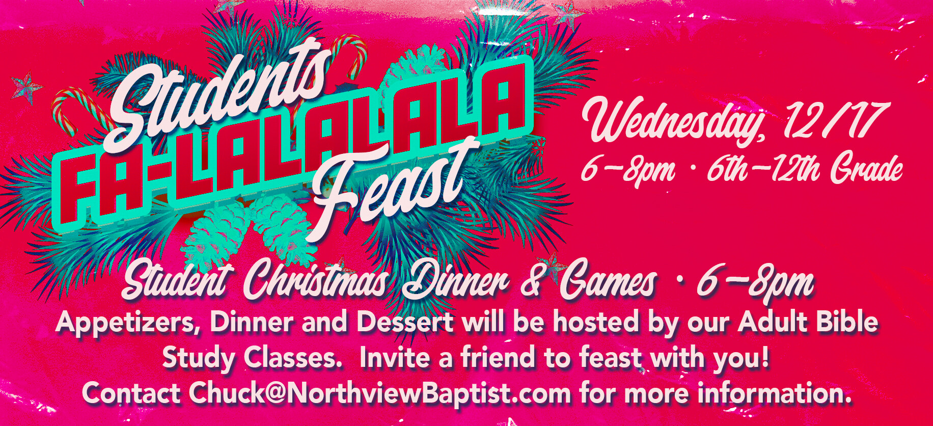 Bible teaching. Then we break into small groups by grade and dig into what God has for our students to learn and apply in their life each week. Each class has dedicated adult leaders investing time into your student, not only by planning lessons but also planning fellowship events to get to know each student and to mentor them in their daily walk with Christ. To find out more about Student Ministry reach out to Chuck@NorthviewBaptist.com.